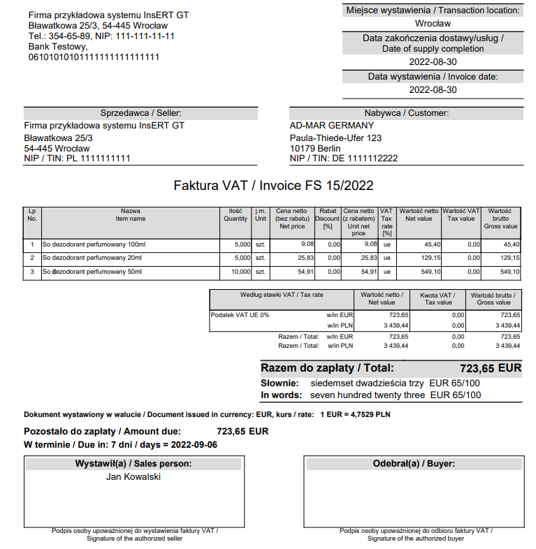 Poniżej przedstawiamy zrzut ekranu z przykładowym wzorcem wydruku faktury polsko-angielskiej.
